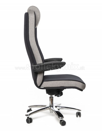 MECHANIKA: Zátažový trojfunkčný mechanizmus Multiblock-dynamic 1) umožňuje nastavenie sklonu kresla do požadovanej polohy, 2) zabezpečuje ergonomický pohyb kresla pri sedení, 3) umožňuje bočné nastavenie sily protitlaku operadla podľa hmotnosti užívateľa. Kreslo je vybavené zátažovým piestom s nosnosťou až 200 kg, ktorým je možné nastaviť výšku sedu podľa požiadavky používateľa.