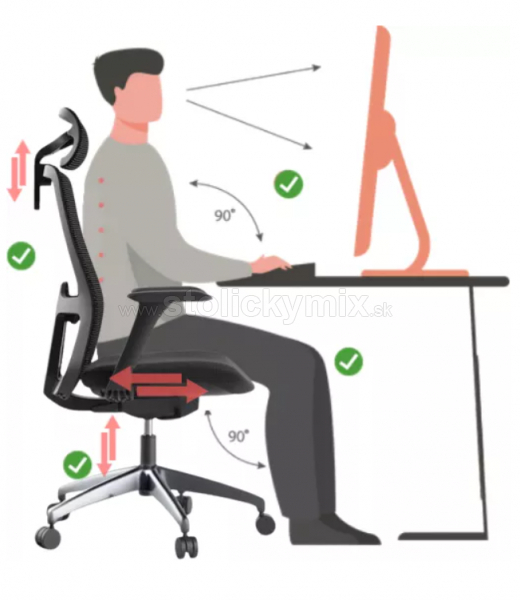 BEDROVÁ OPORA : výškovo nastavieľná plastová bederná opora je súčasťou operadla stoličky