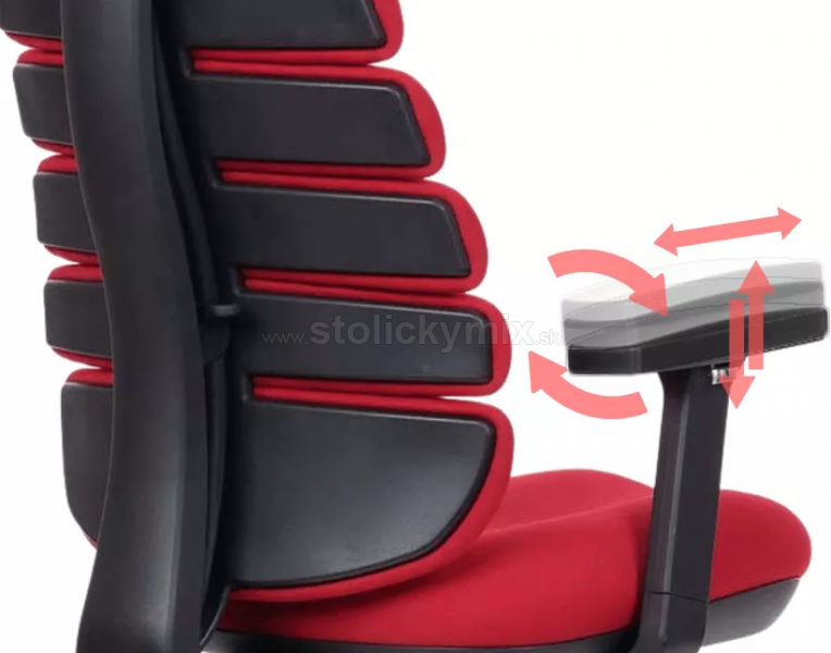 3D podrúčky stoličky SPINE sa dajú nastaviť hore a dole pomocou tlačidla na vonkajšej strane; dotykovú časť možno posúvať dopredu a dozadu a tiež šikmo – do strán. Dotyková časť podrúčok je vyrobená z mäkčeného PU.