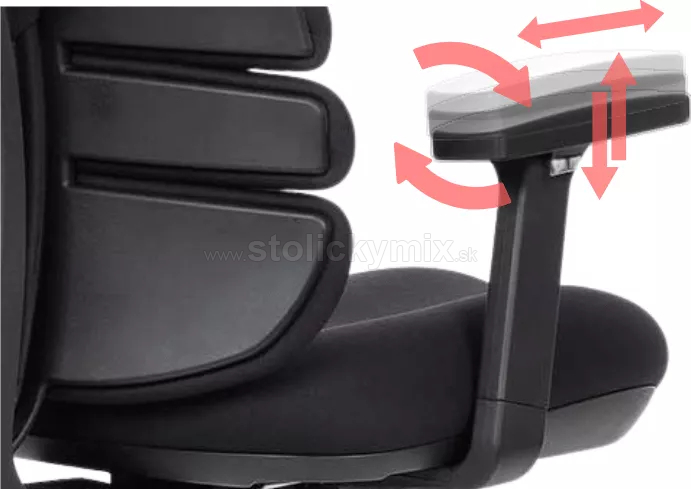 3D podrúčky stoličky SPINE sa dajú nastaviť hore a dole pomocou tlačidla na vonkajšej strane; dotykovú časť možno posúvať dopredu a dozadu a tiež šikmo – do strán. Dotyková časť podrúčok je vyrobená z mäkčeného PU.