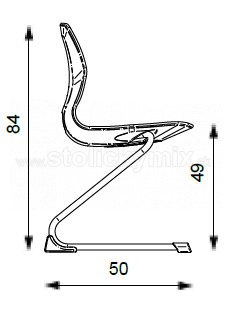 Moderná školská stolička kovovej konštrukcie na lyžine s pevným plastovým sedadlom.