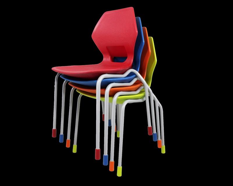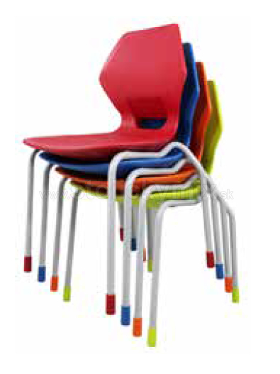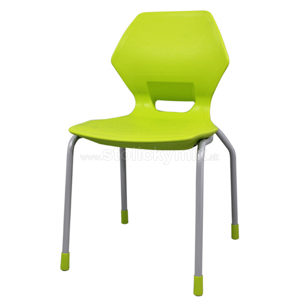 Stohovateľná stolička na 4 nohách je praktickou pre školy a jedálne.