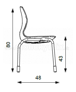 Stohovateľná stolička na 4 nohách je praktickou pre školy a jedálne.