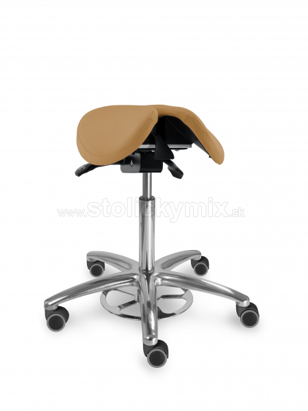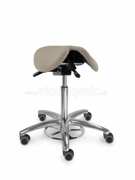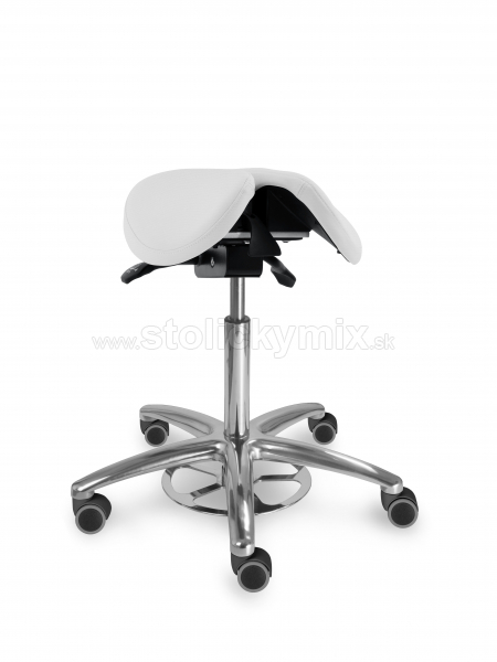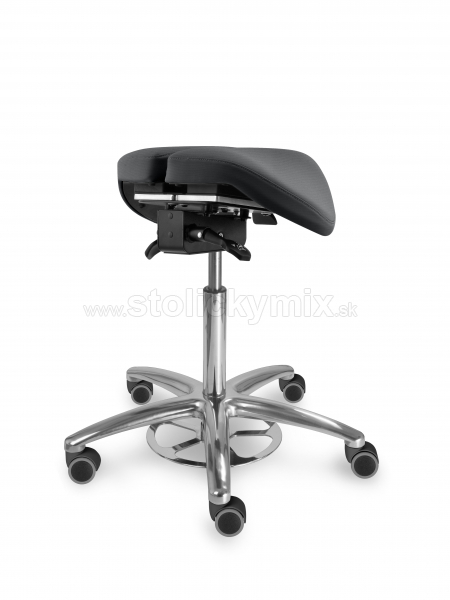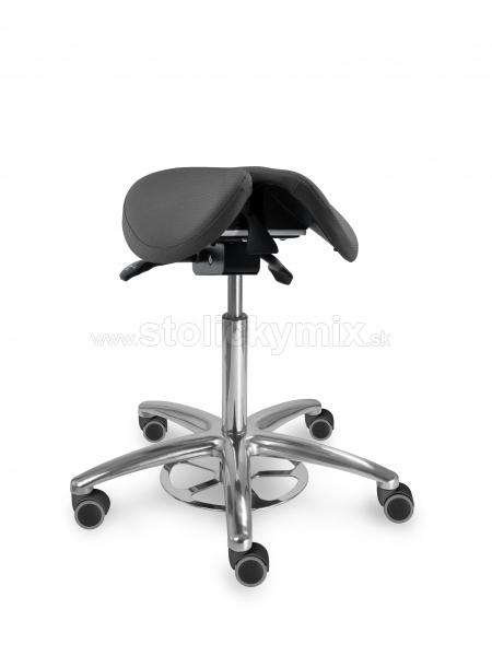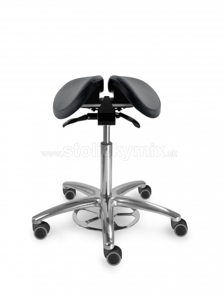 Ergonómia: stolička s ergonomicky tvarovaným deleným sedlovým sedákom pre zníženie záťaže na pánvové dno.