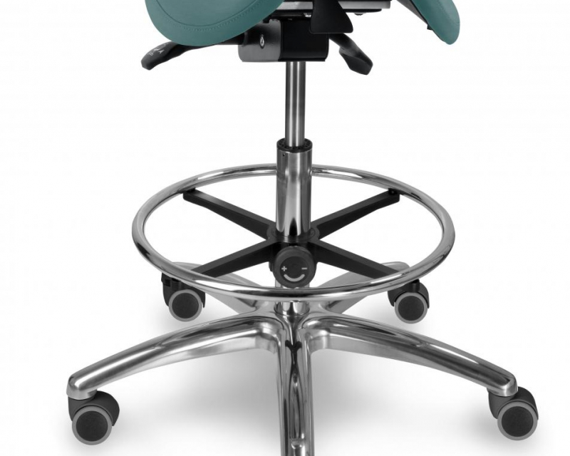 Ergonómia: stolička s ergonomicky tvarovaným deleným sedlovým sedákom pre zníženie záťaže na pánvové dno.