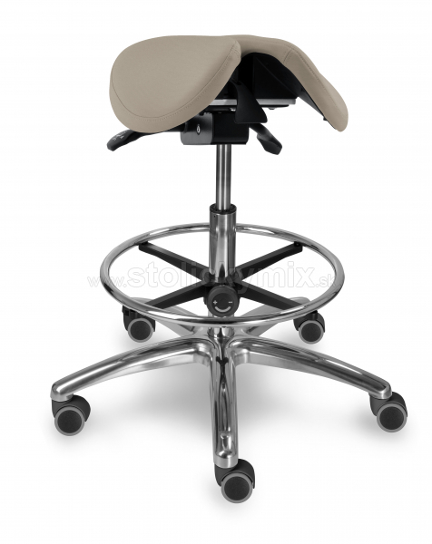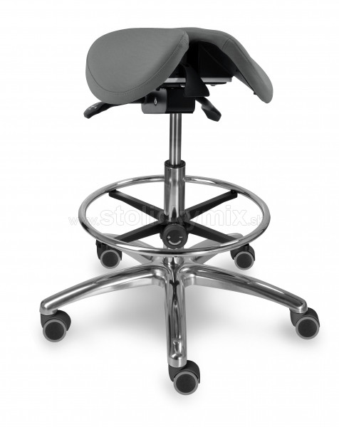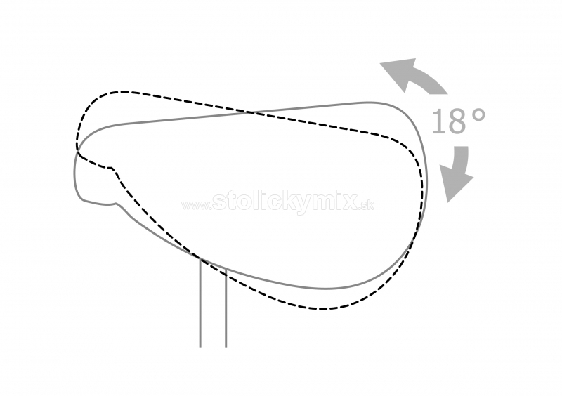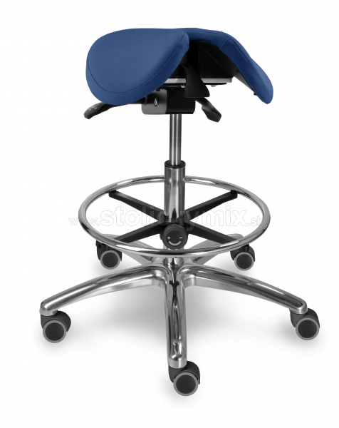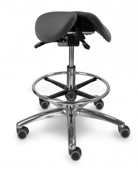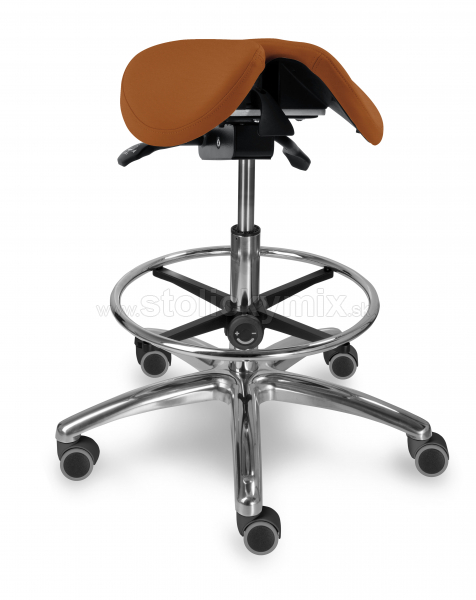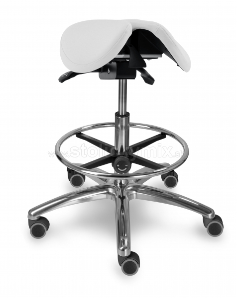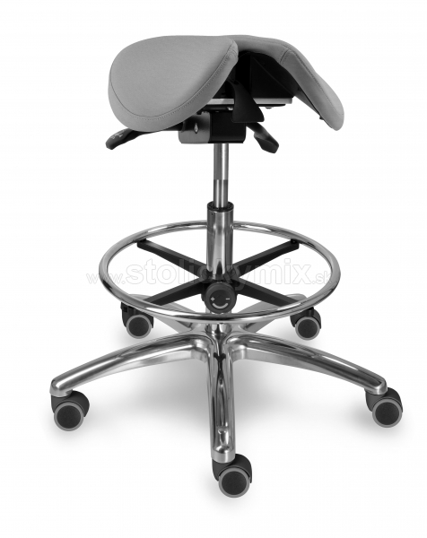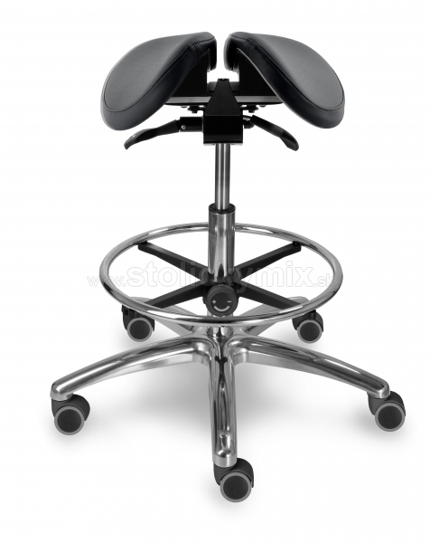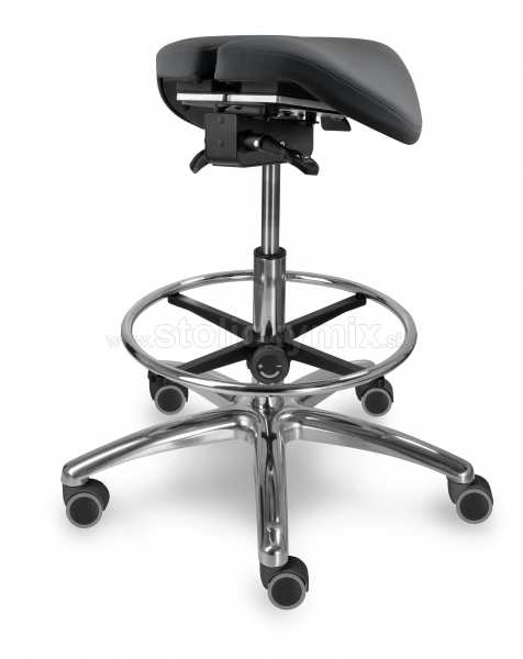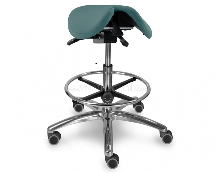 Ergonómia: stolička s ergonomicky tvarovaným deleným sedlovým sedákom pre zníženie záťaže na pánvové dno.