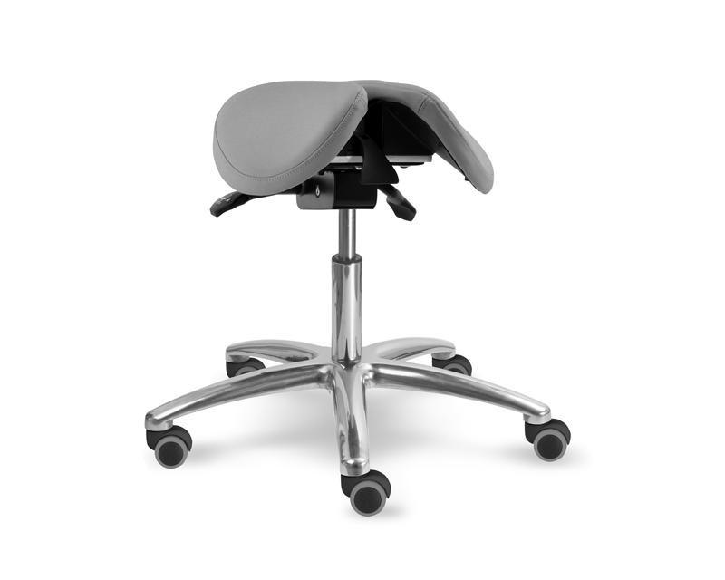 Ergonómia: stolička s ergonomicky tvarovaným deleným sedlovým sedákom pre zníženie záťaže na pánvové dno.