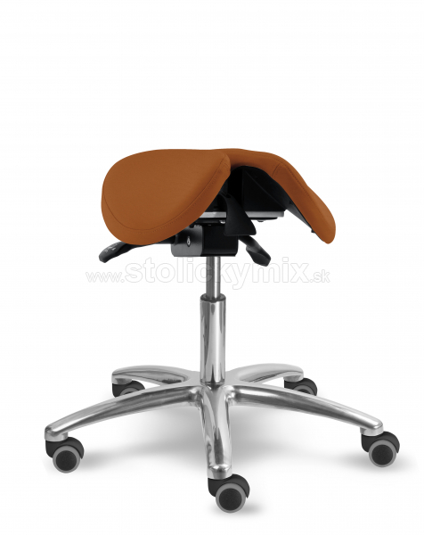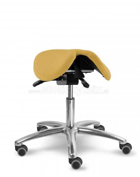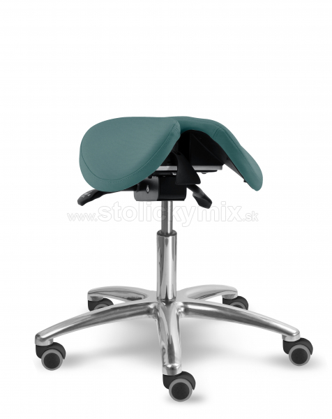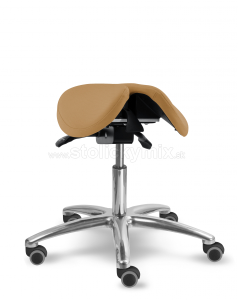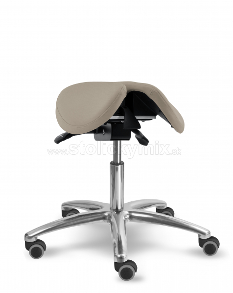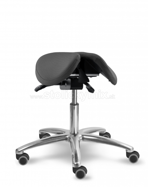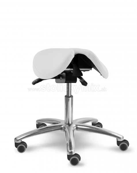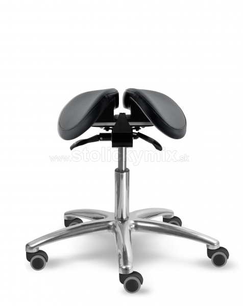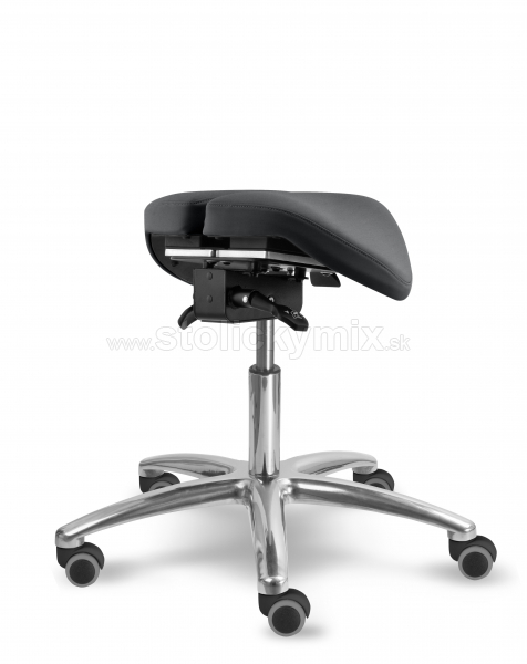Ergonómia: stolička s ergonomicky tvarovaným deleným sedlovým sedákom pre zníženie záťaže na pánvové dno.